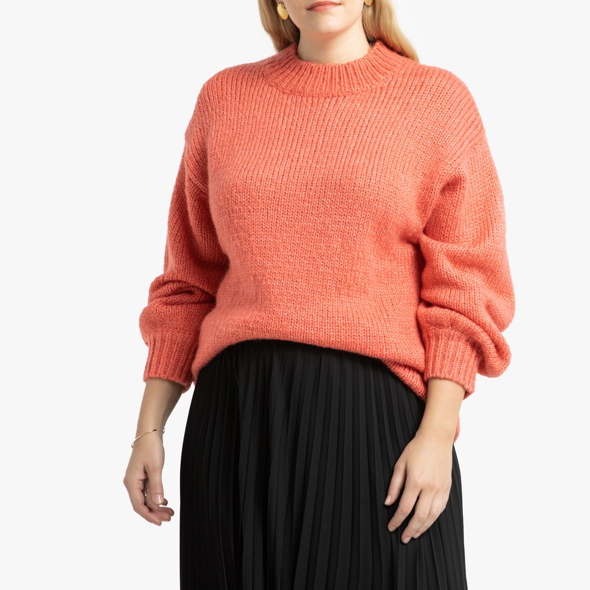 On e envie de s’emmitouffler dans ce superbe pull douillet en grosse maille. À noter, ses manches ballons pour la touche tendance oversize. Vous pouvez le porter avec une jupe longue et des bottes, ou avec un jean.Détails produit Manches longues Col rond Grosse mailleComposition et Entretien 62% acrylique, 30% polyester, 8% polyamide Température de lavage 30° cycle délicat Température de repassage faible / blanchiment interdit Ne pas sécher en tambour Pas de nettoyage à secVêtement grande tailleEn savoir plus Manches ballons Finition bord côtes au col, bas de manches et base Longueur : 69 cm en taille 46/48